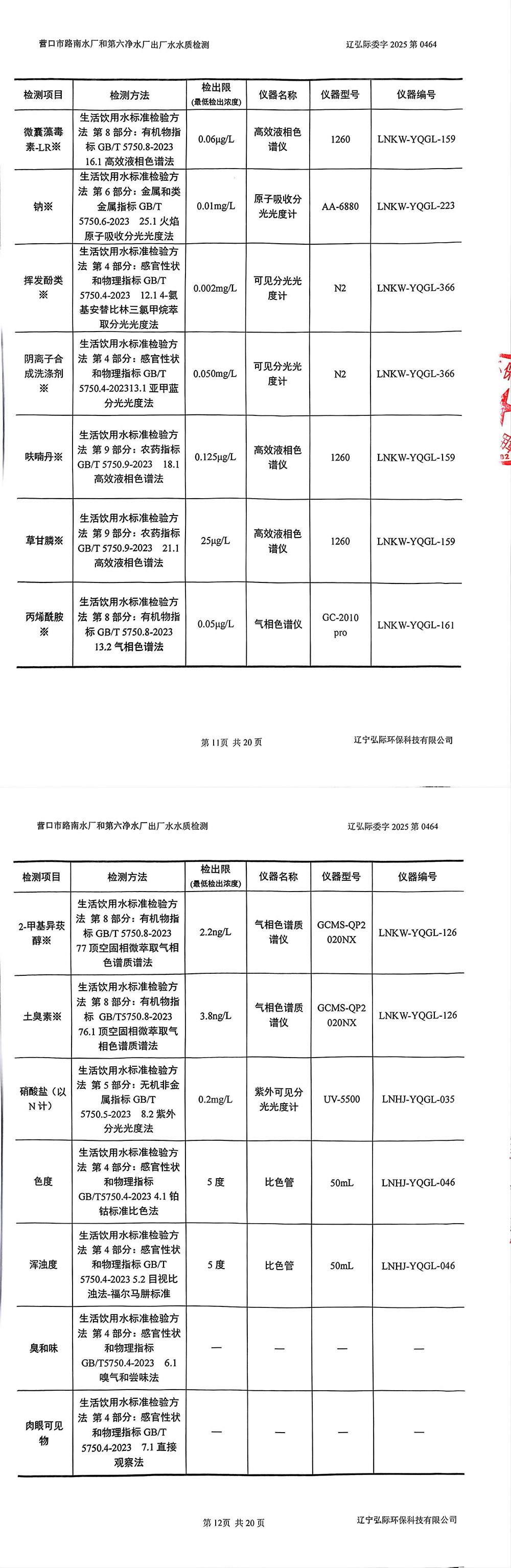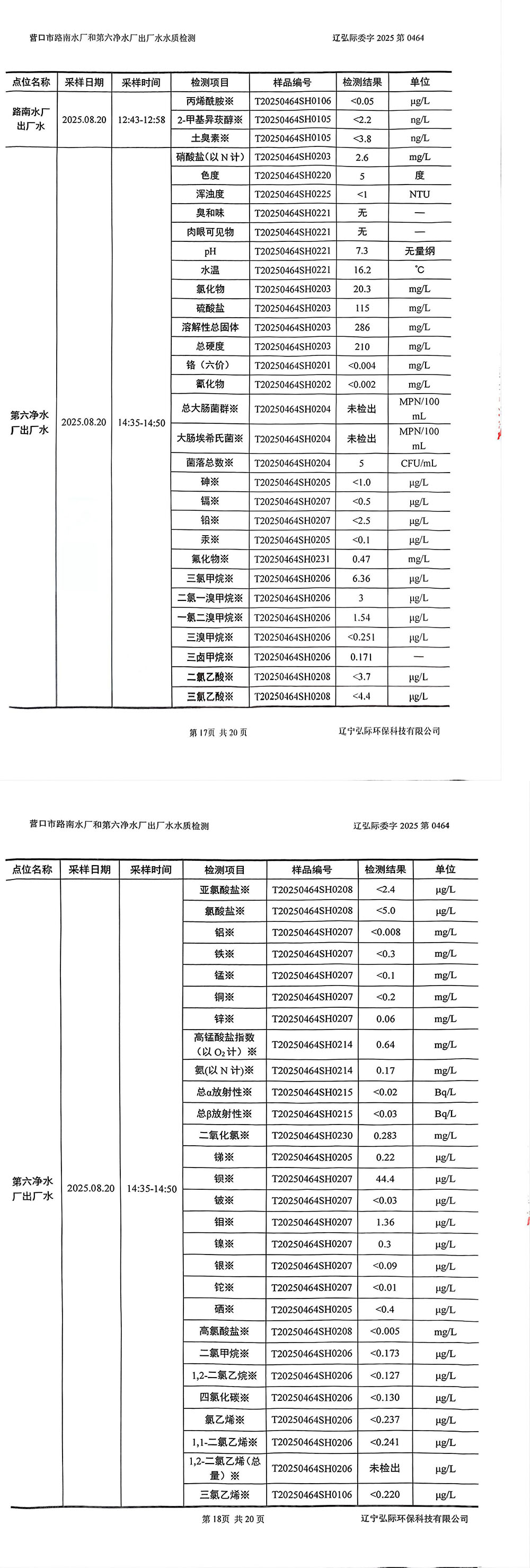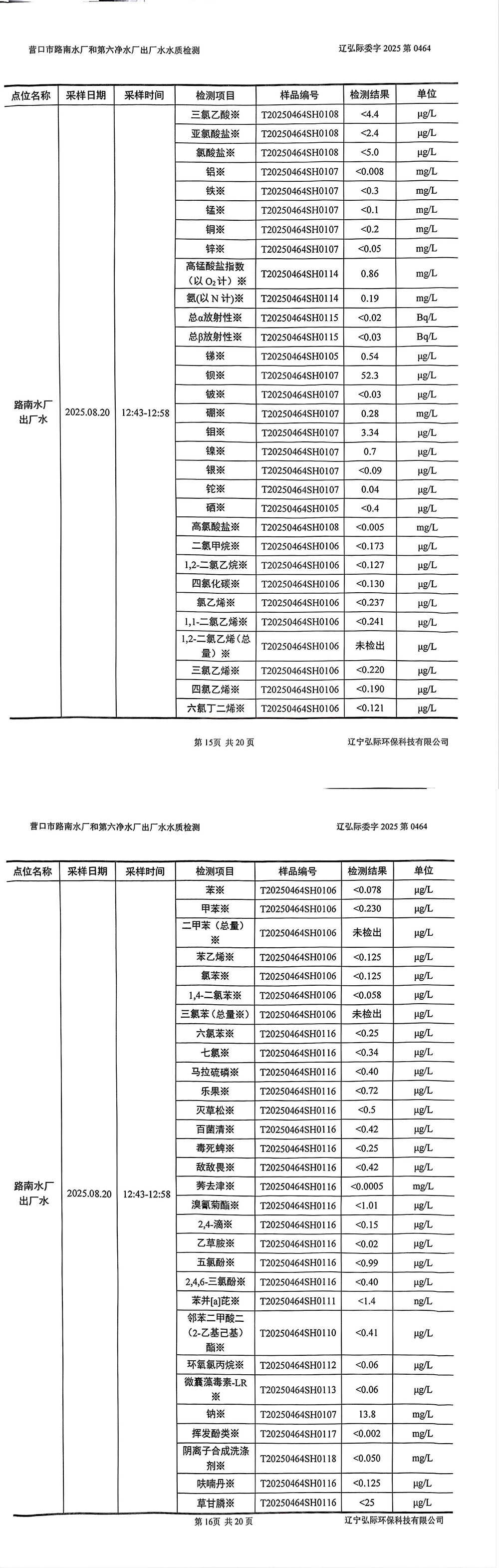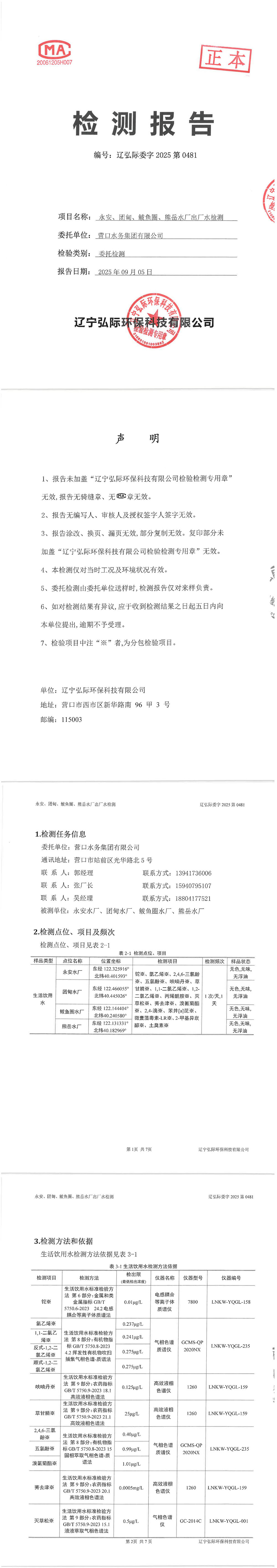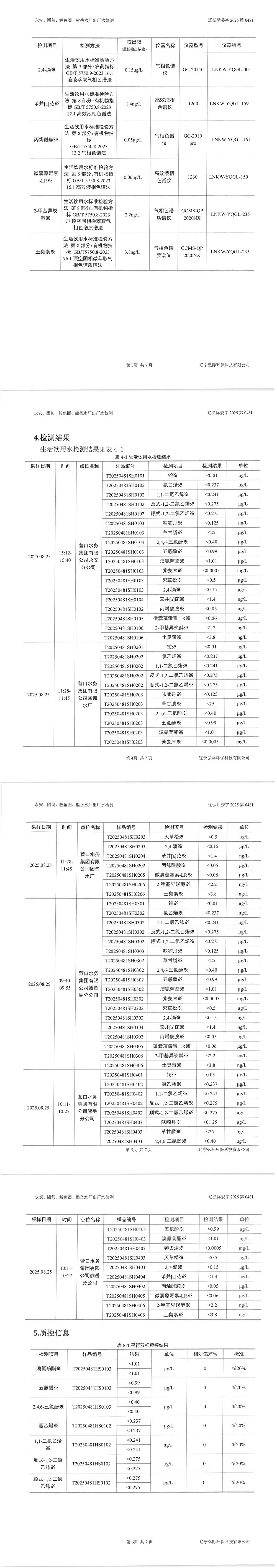 2025年3季度水質公示報告