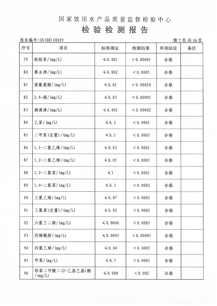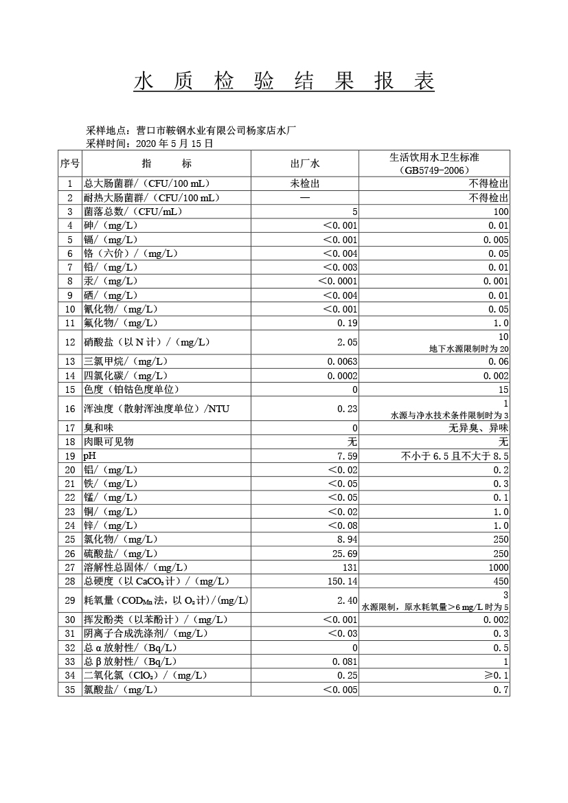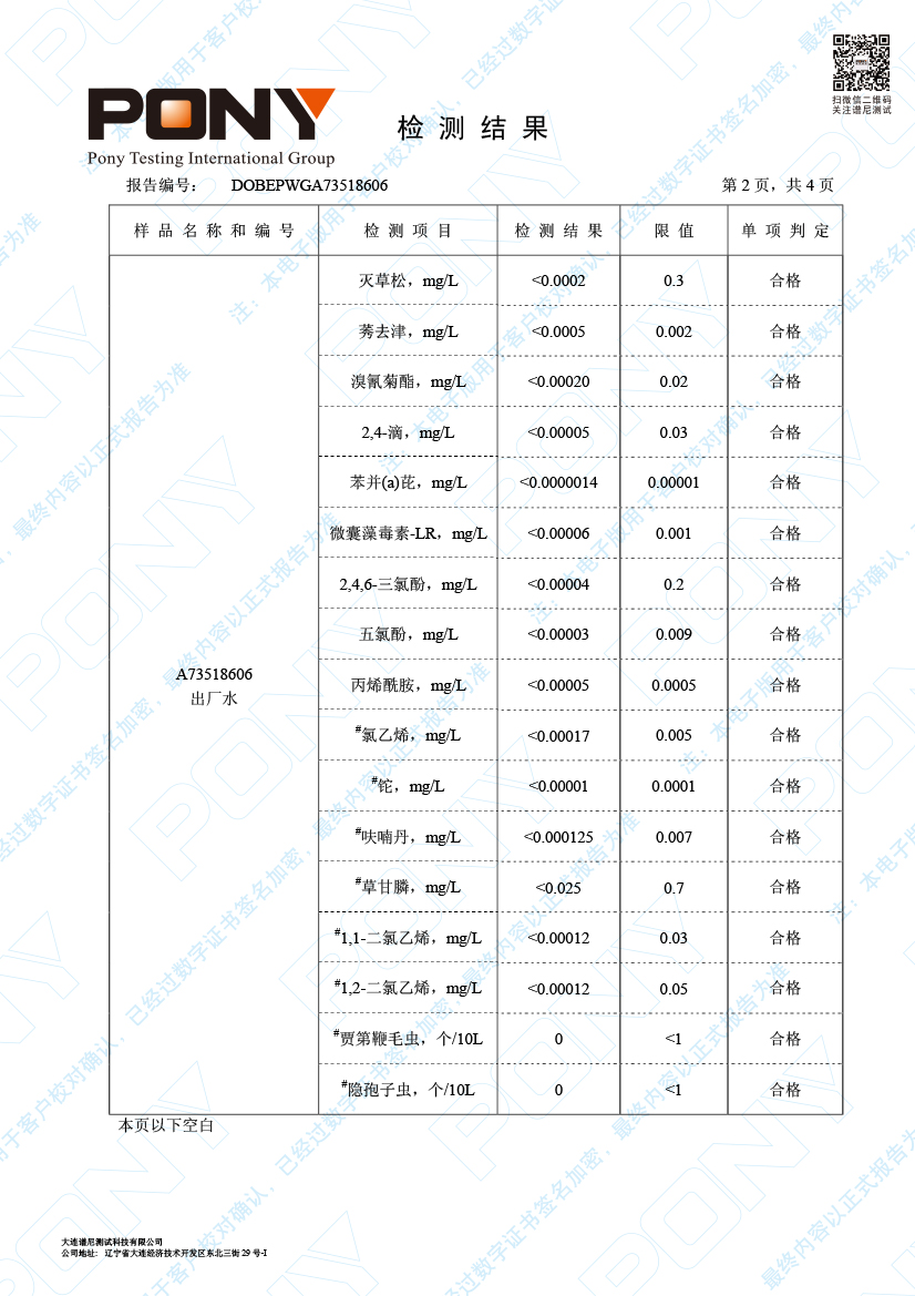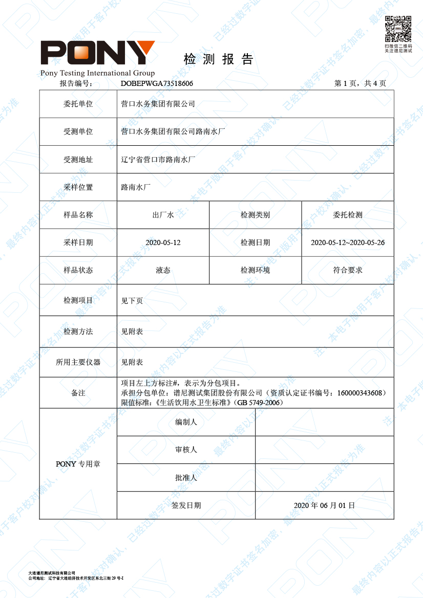 水質(zhì)報告
