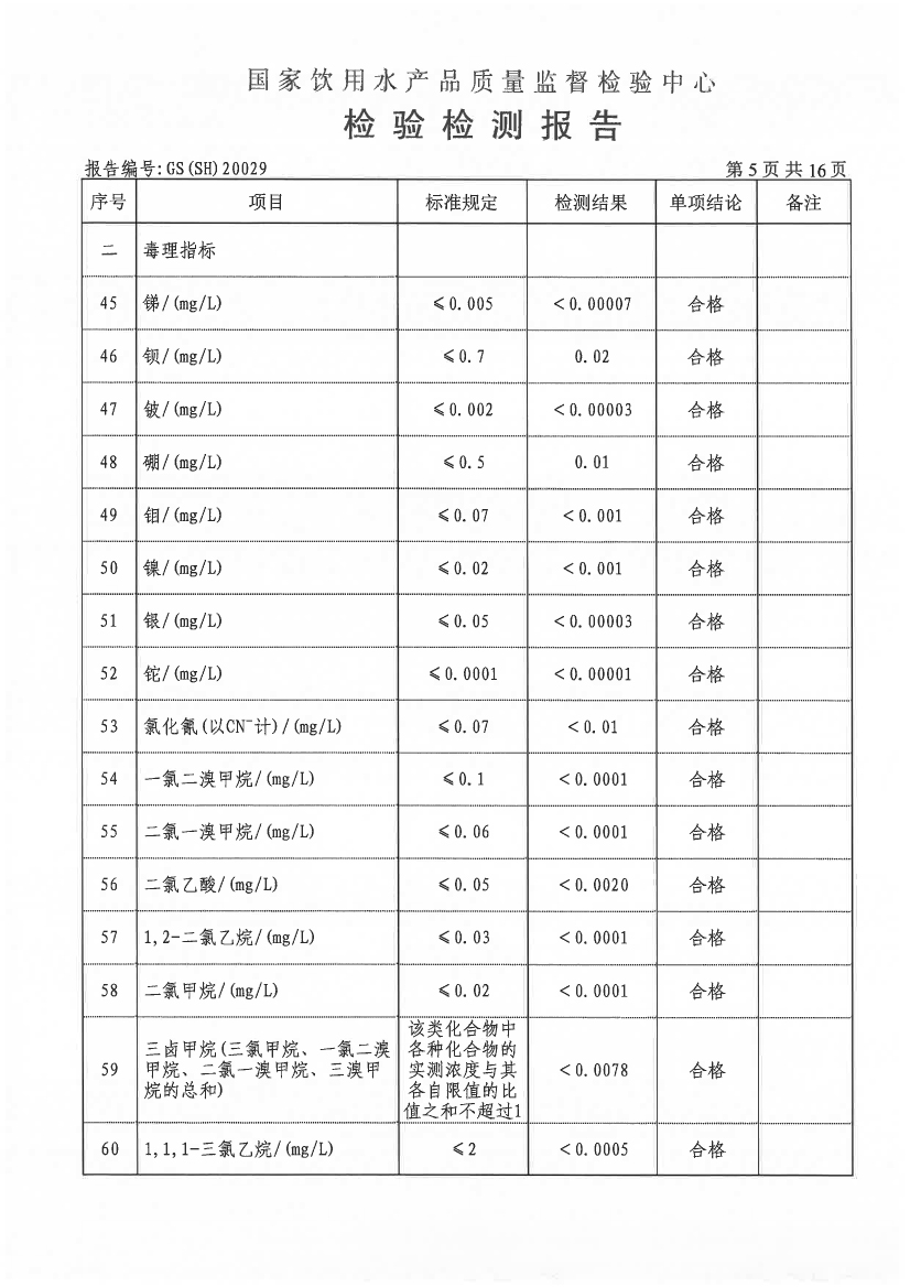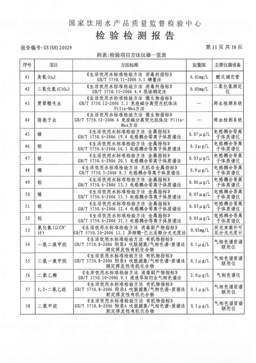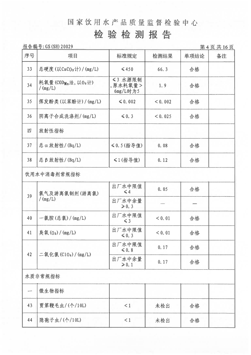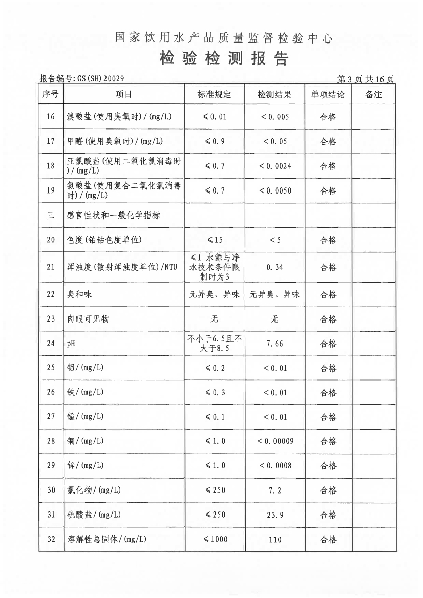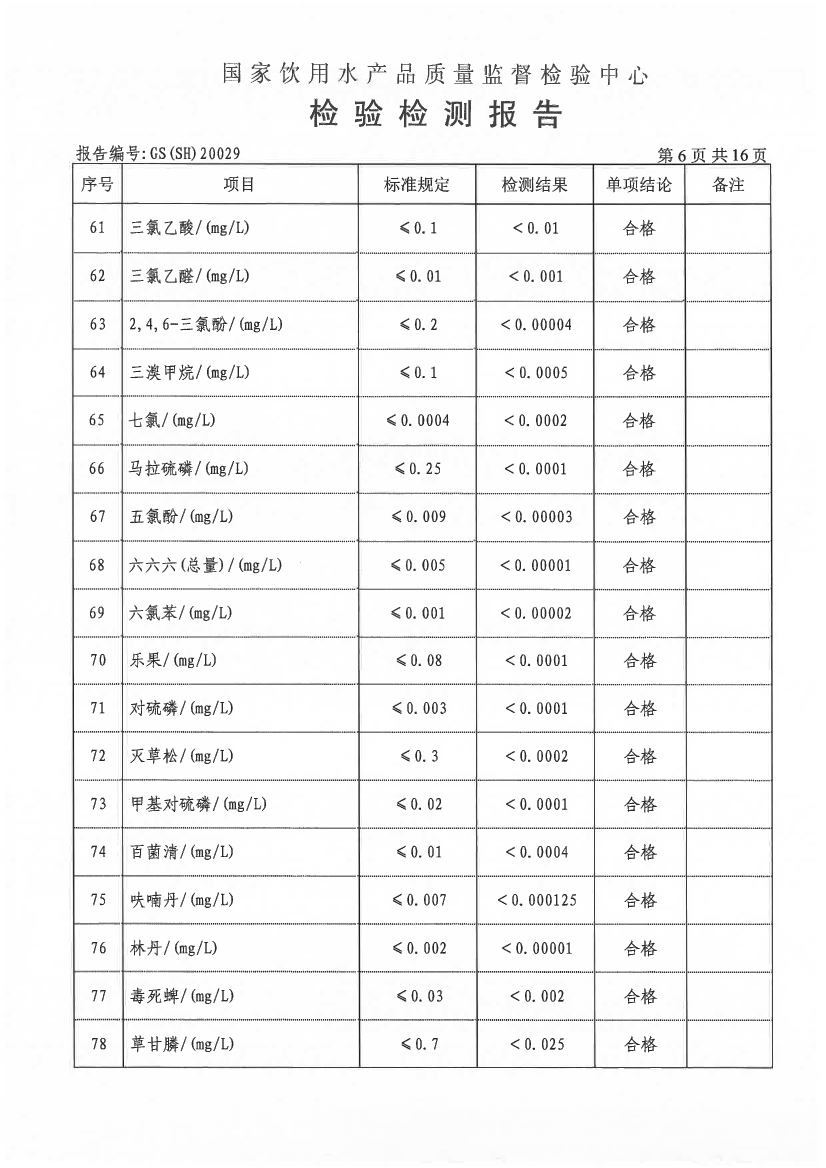 水質(zhì)報告