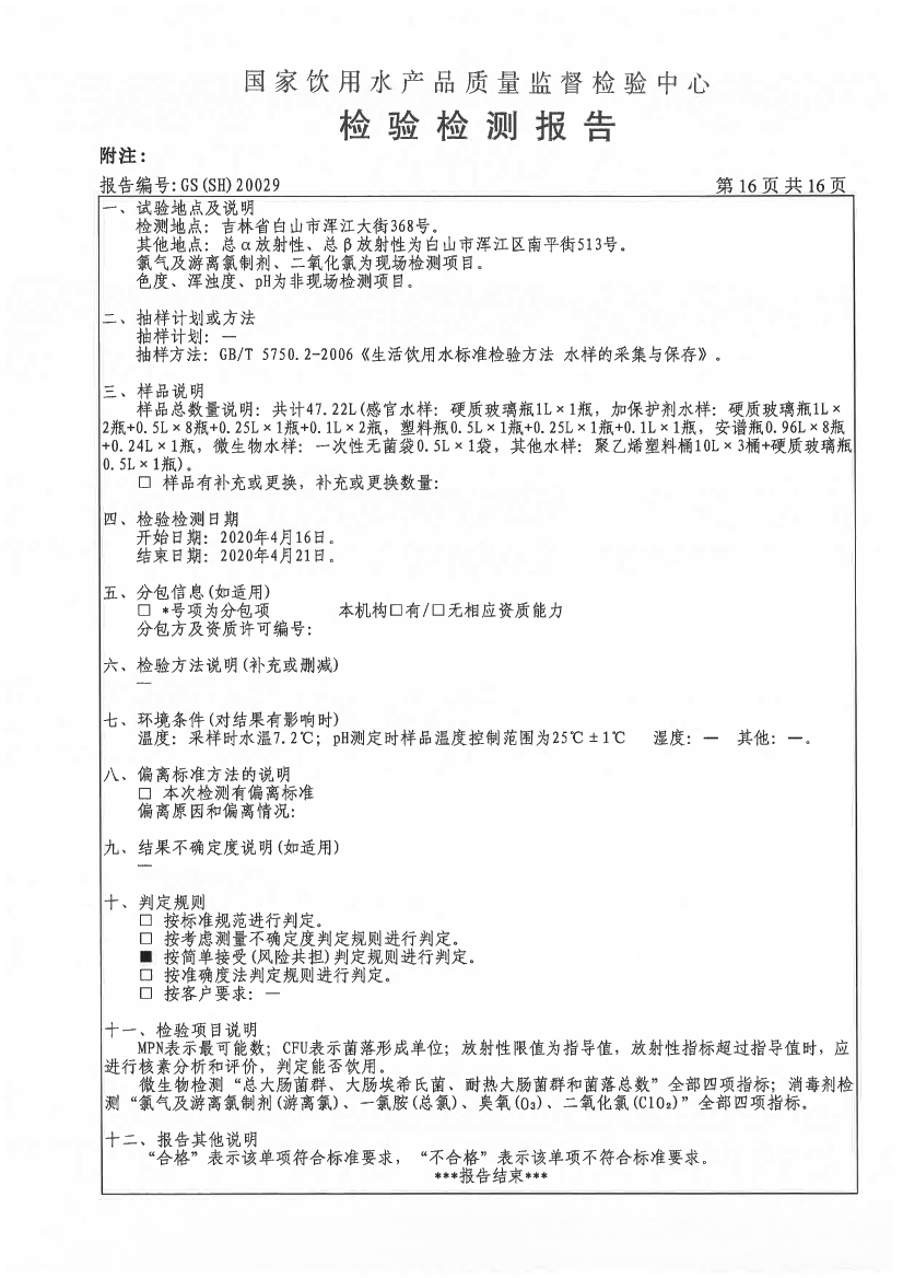 2020年2季度水質(zhì)公示報告